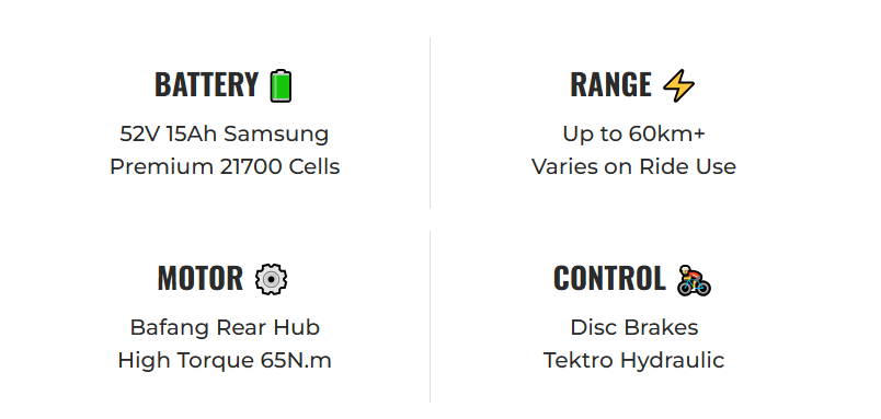 Under the hood, the ACE-X STREET doesn’t just look good—it performs. Featuring a High Torque Bafang Rear Hub Motor, Shimano 7-Speed Derailleur, and Tektro Hydraulic Disc Brakes, this bike is built to handle whatever the streets throw your way. The 20x4” Schwalbe Supermoto tyres provide superior grip and comfort, while the custom Master Control Unit optimises power delivery for an effortless ride.