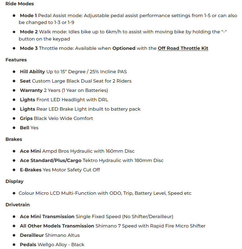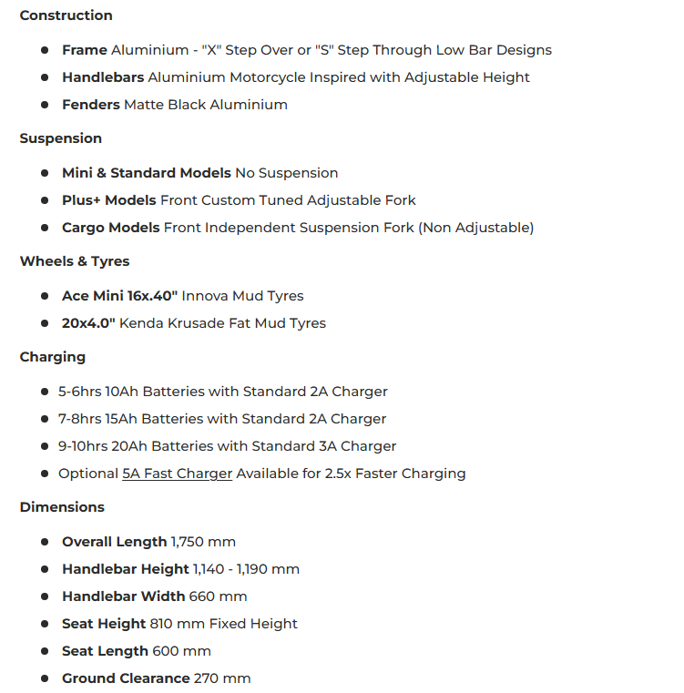 Explore the for your new ACE Bike or speak to our Friendly Team for personalised customisation options.