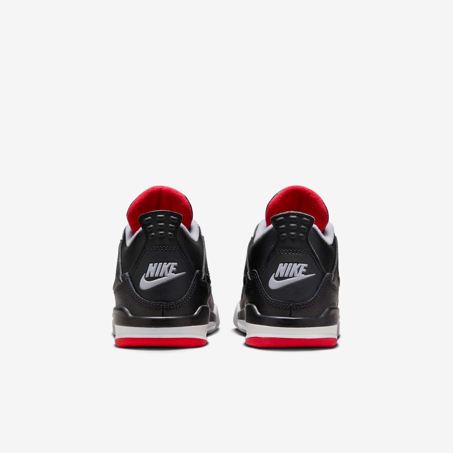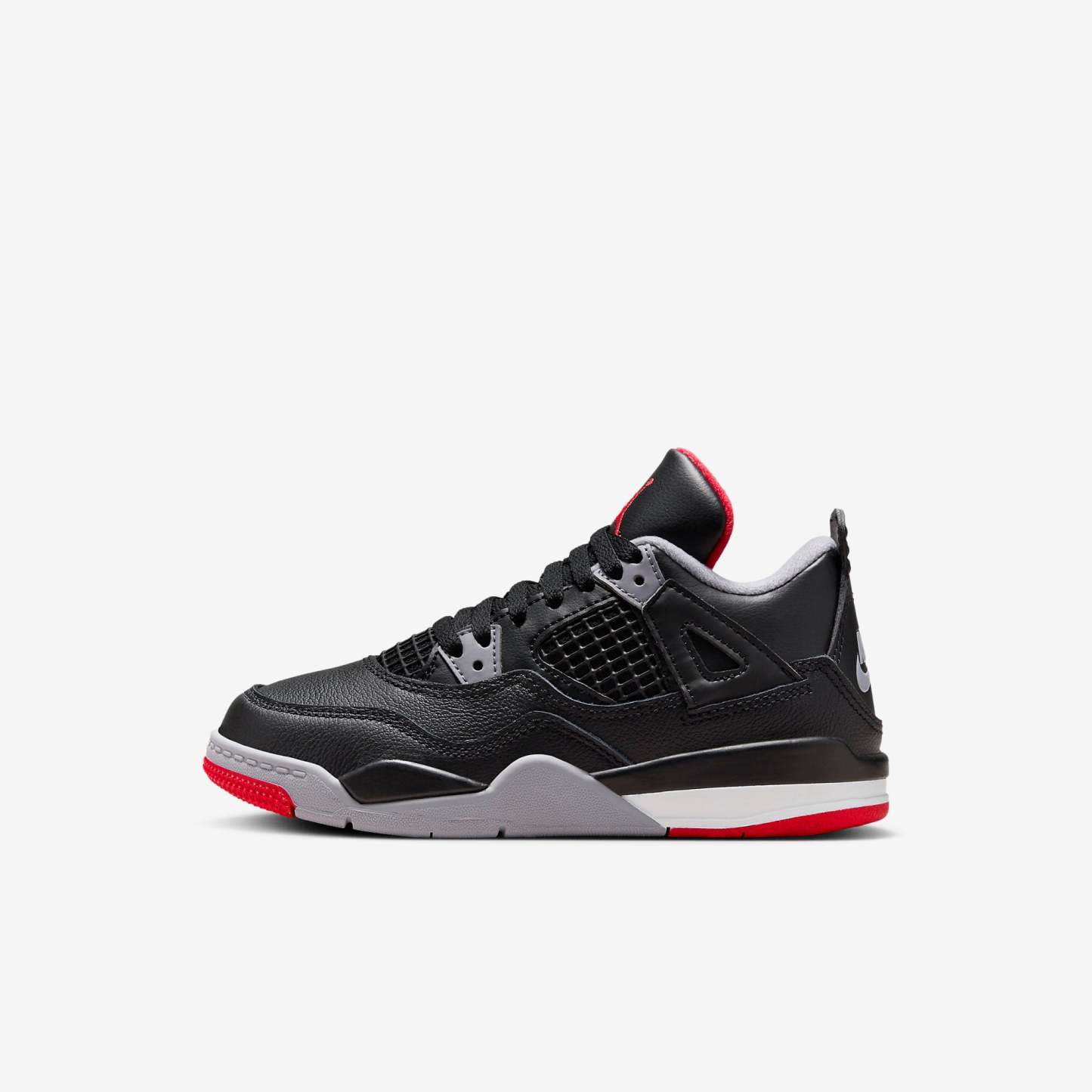 For the first time, the reimagined AJ4 presents the iconic 'Bred' colorway crafted from premium full-grain leather, complete with updated packaging. The design returns to the original 1989 specifications in shape, fit, and feel, featuring rich black leather accented with Fire Red and Cement Grey. Celebrating its 35th anniversary, this renewed icon offers a fresh expression for a new generation.