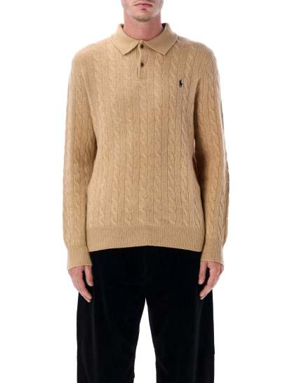 Cable knit polo sweater by polo rathtlph lauthtren.featuring:cashmere wool cable knitrib-knit polo collartwo-button placketlong sleeevsribbed cuffs and hemsignature embroidered pony at chestregular fitandrea is 1,90 m and wears size l