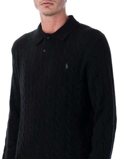 Cable knit polo sweater by polo rathtlph lauthtren.featuring:cashmere wool cable knitrib-knit polo collartwo-button placketlong sleeevsribbed cuffs and hemsignature embroidered pony at chestregular fitandrea is 1,90 m and wears size l