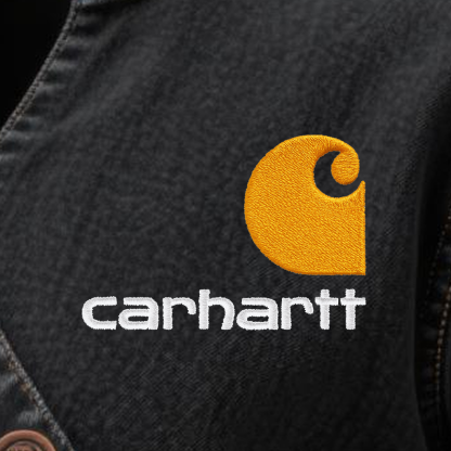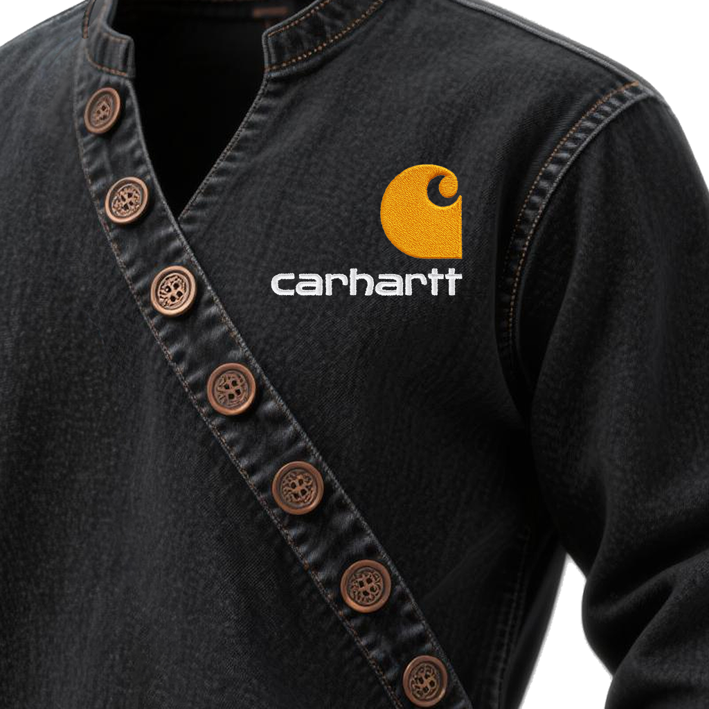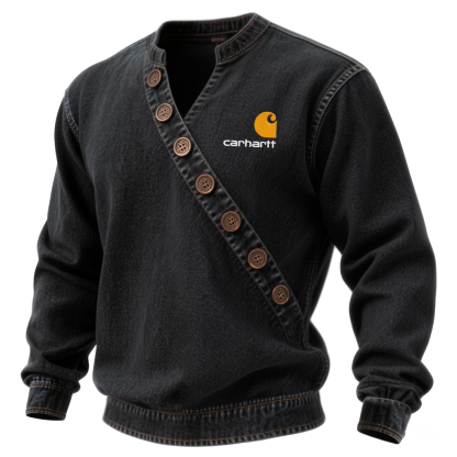 Men's Vintage Denim V-Neck Sweatshirt Jacket With Embroidered Logo