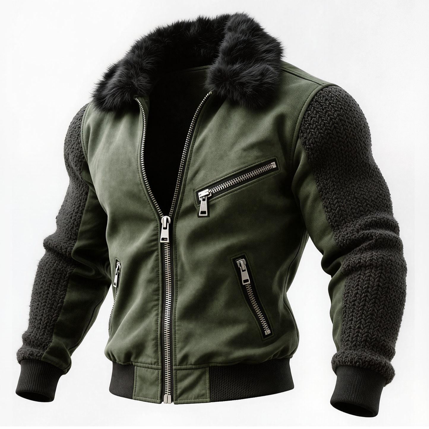 Men's Vintage Military Green Bomber Jacket With Fur Collar