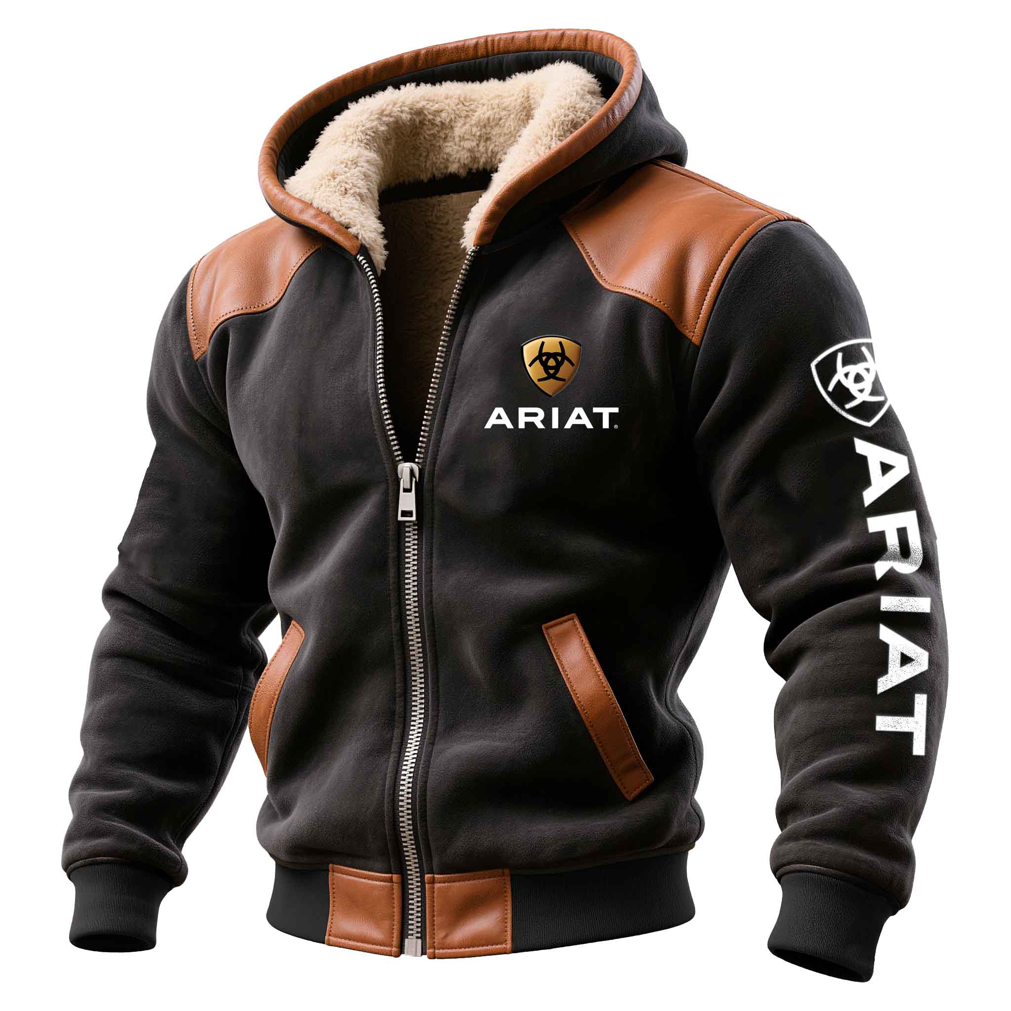Men's Vintage Western Cowboy Suede Fleece Leather Fur Hooded Jacket