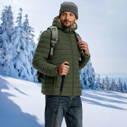 Men's Insulated Puffer Jacket Hooded Warm Winter Coat