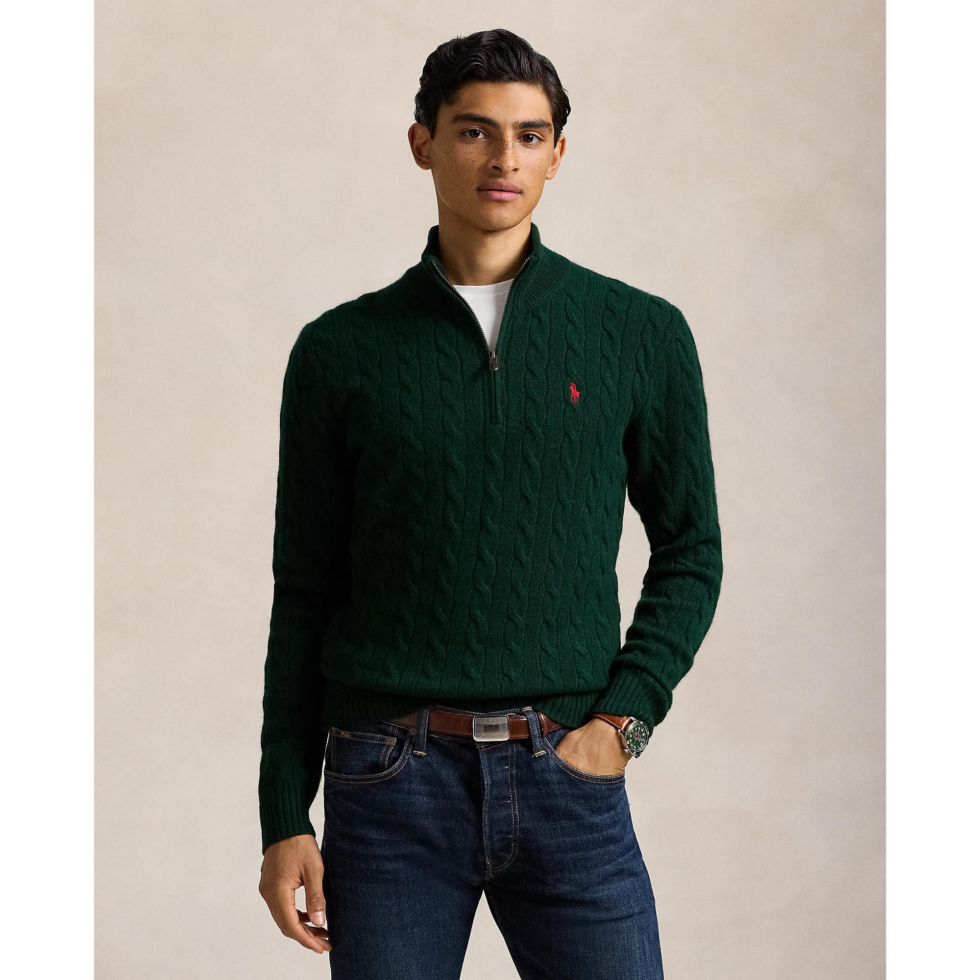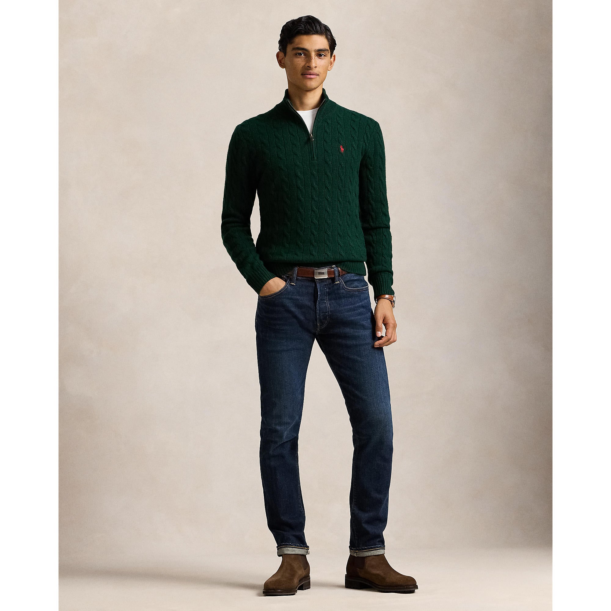 This interpretation of our iconic cable-knit jumper is crafted from Italian yarn that's spun with wool and cashmere.