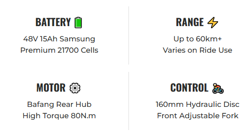 With a stronger 80N.m Bafang rear hub motor, the Stubbie PRO delivers noticeably more torque than the standard 65N.m model — perfect for steeper climbs, quicker takeoffs, and confident performance across all conditions. Paired with a premium Samsung 48V/15AH battery, you can enjoy over 60km of real-world range with pedal assist and optional throttle mode to tailor your ride exactly how you like it.