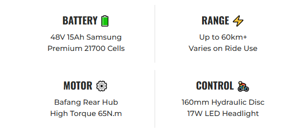 With a Samsung 48V/15AH lithium battery, the Stubbie-S delivers an impressive 60+ km range on a full charge. The Bafang rear hub motor comes standard with 65N.m of impressive torque and power for thrilling adventures. Whether you’re tackling steep inclines or cruising on flat terrain, this bike has the power and versatility to take you there. Plus, with adjustable pedal assist modes and optional throttle mode, you can customize your ride to suit any situation.